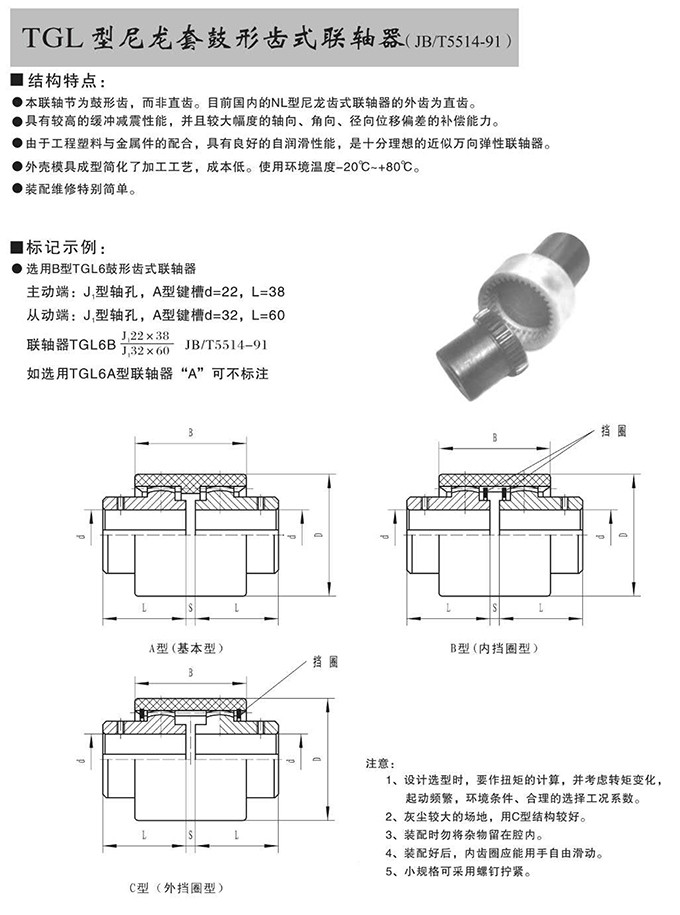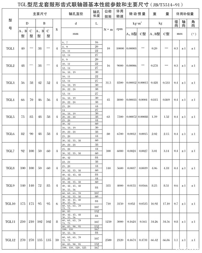 yo米直播nba提供TGL型尼龙套鼓形齿式联轴器具有拆装方便,快速安装等特点,广泛用于连接/固定轮毂孔和零件的轴,例如齿轮,锥齿轮,链轮,叶轮,凸轮,皮带轮和飞轮等轴的联结固定,咨询电话:18906872378